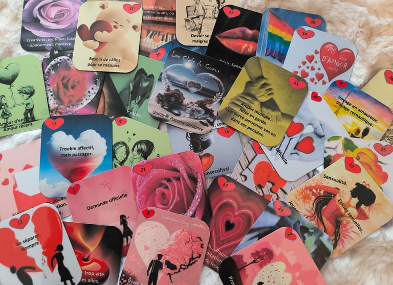 Oracle sentimental, relationnel de 32 cartes. Ma création 2022.